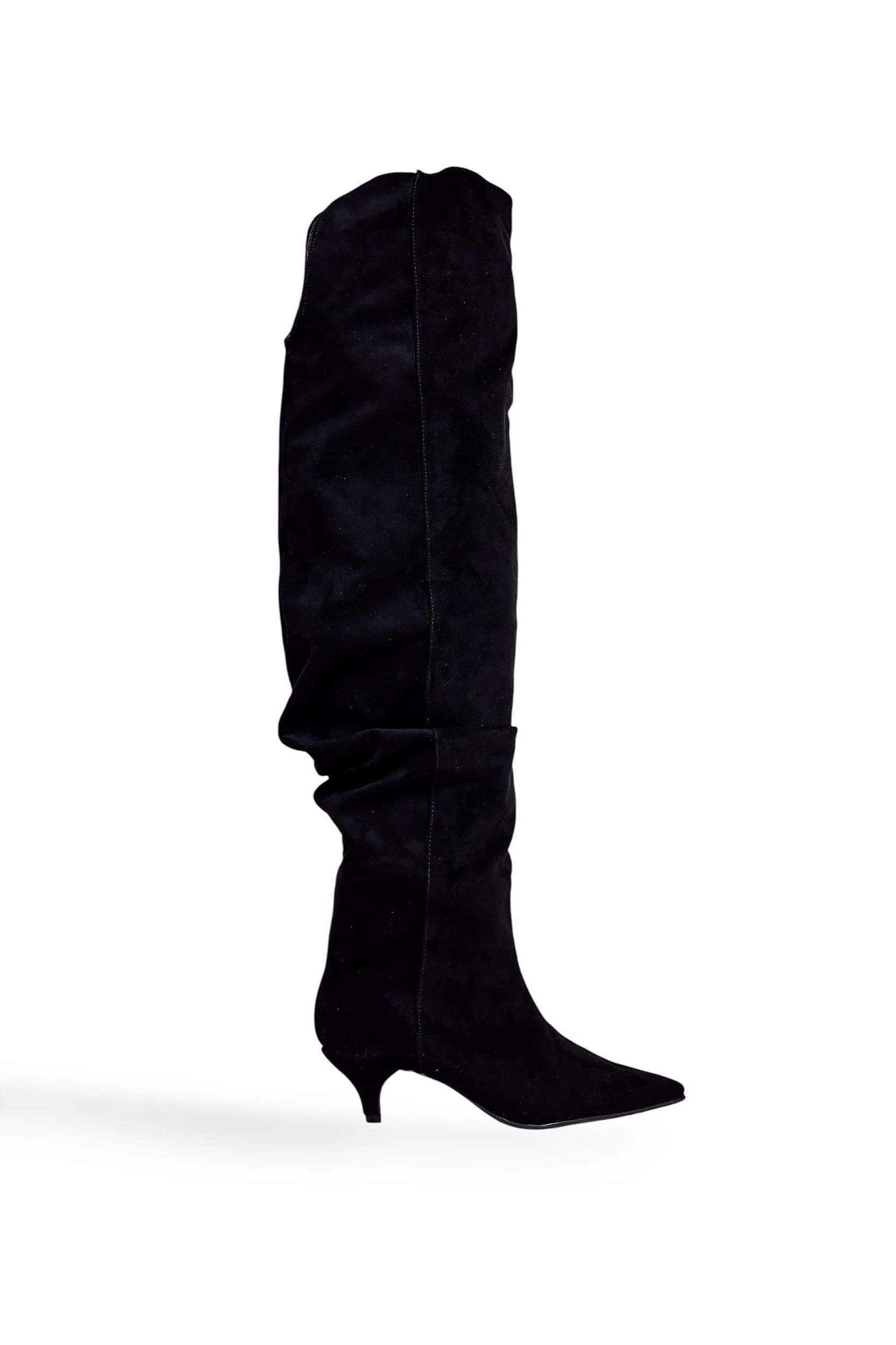 A Bota Feminina Over The Knee Isabele Bico Fino é aquele modelo poderoso que alonga a silhueta e transforma qualquer look em uma produção elegante e marcante. Com 58 cm de cano, ela ultrapassa o joelho e cria um visual sofisticado e feminino. O efeito slouch no cano traz um toque moderno e estiloso, enquanto o bico fino deixa o desenho ainda mais refinado.