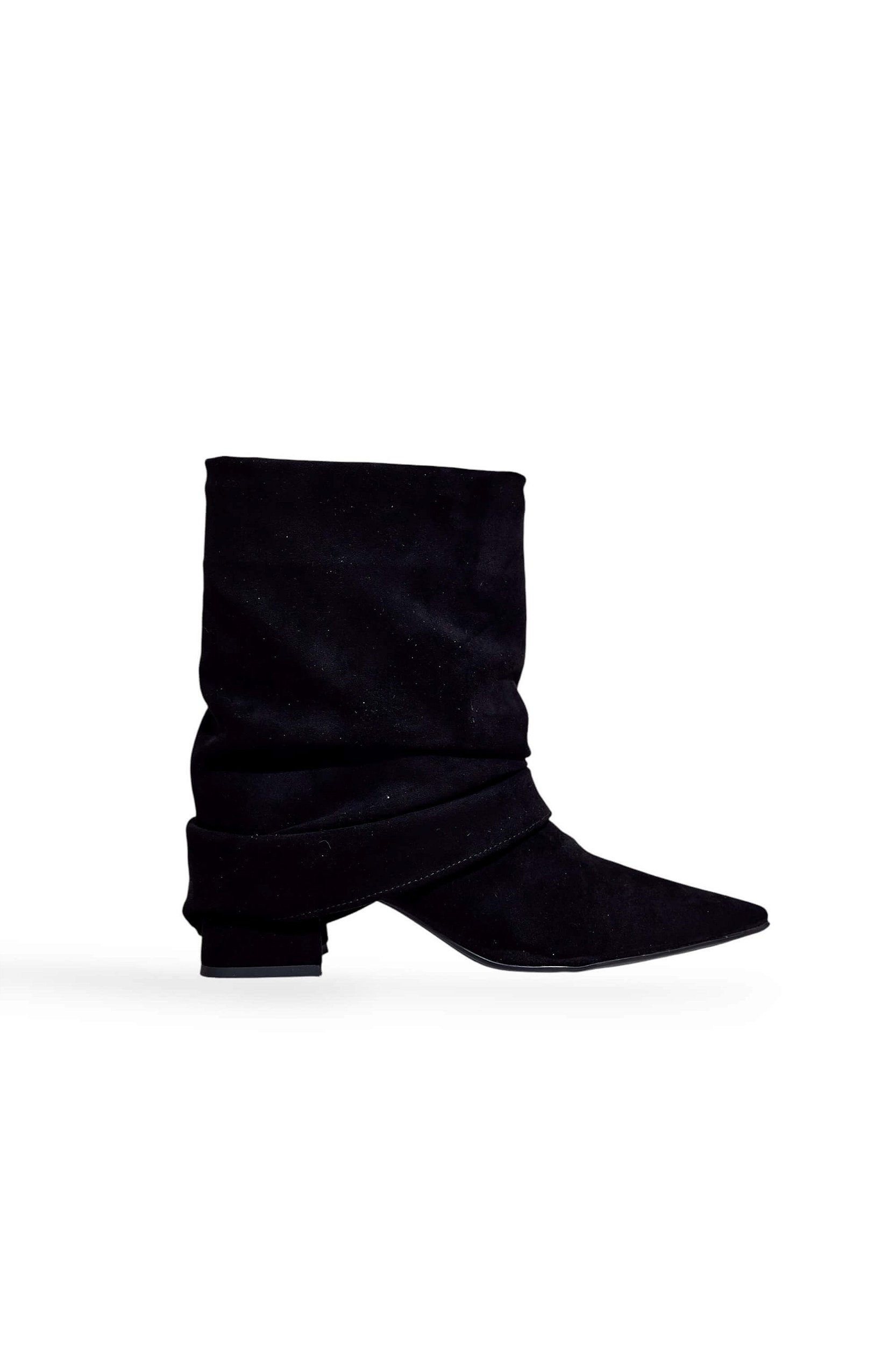 | Detalhes | Efeito franzido no cano, design elegante, salto confortável para uso diário |