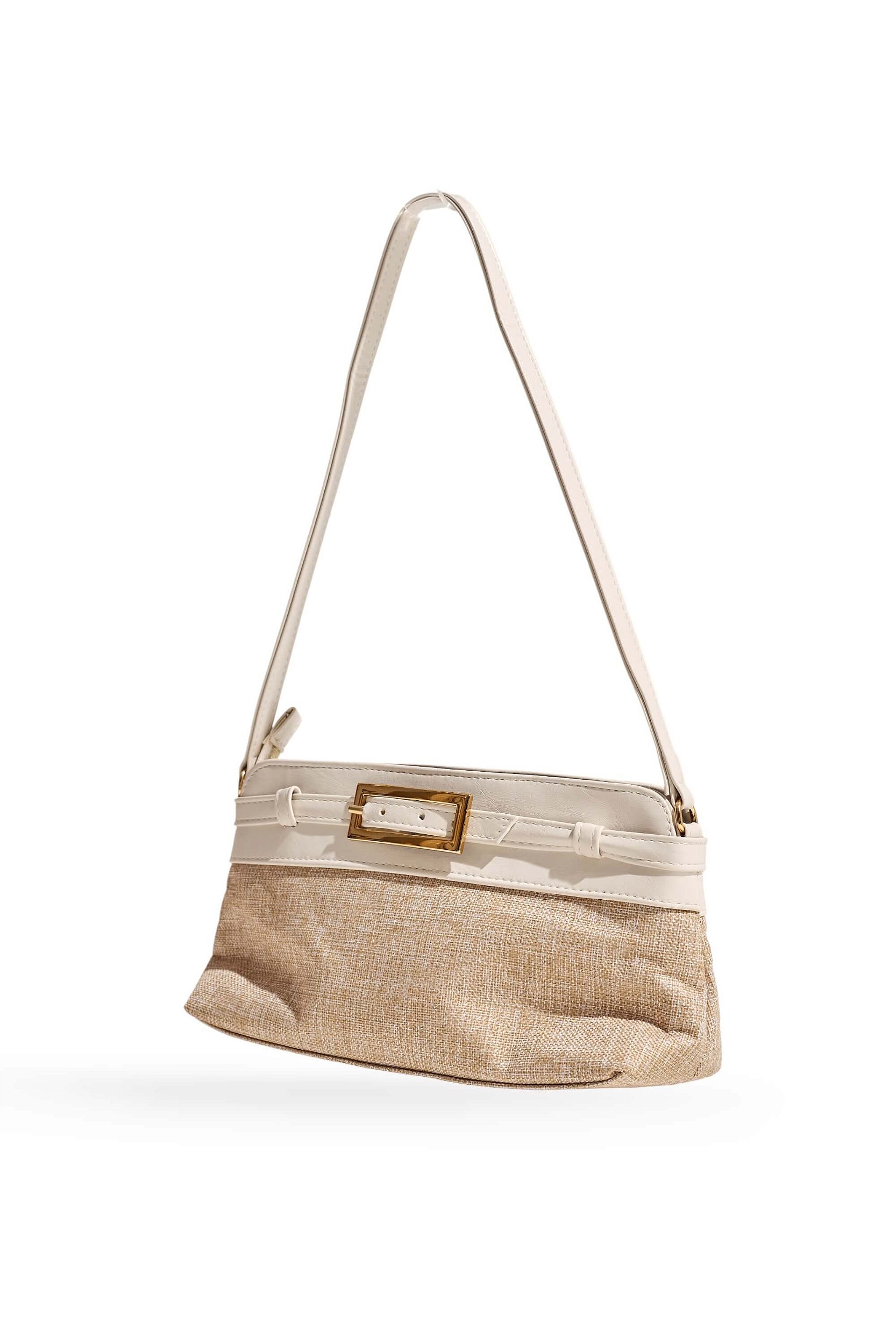 A Bolsa Feminina Jess é o toque retrô que promete ser destaque nas produções de 2026. Produzida em material sintético estruturado com textura leve, ela combina o charme do tom off white com os detalhes em preto e fivela metálica dourada frontal, criando um contraste sofisticado e moderno. Um modelo elegante que traz personalidade e versatilidade em cada detalhe.