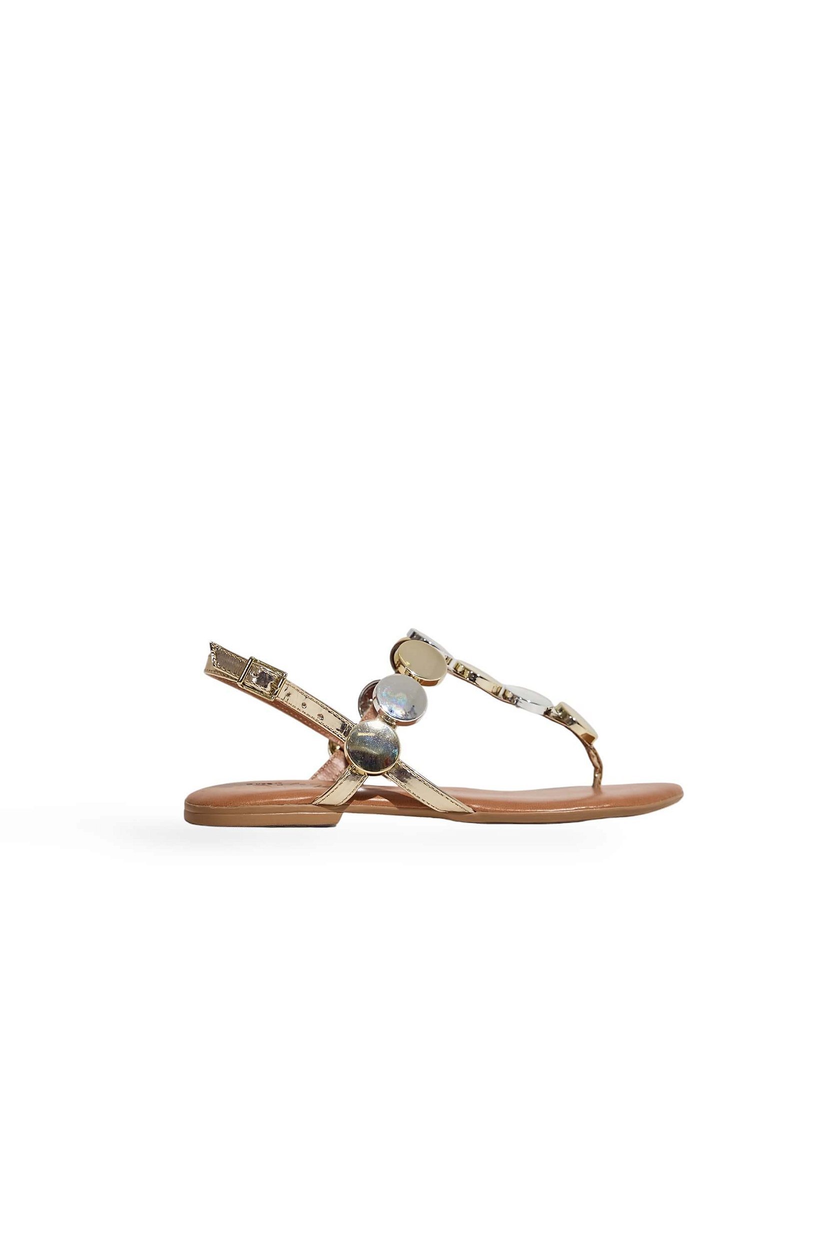 A Sandália Rasteira de Dedo Prosperidade 2026 combina leveza, brilho e modernidade em um único modelo. Com acabamento em prata e dourado, ela traz o charme das moedas metálicas que dão um toque sofisticado e cheio de personalidade ao visual. O design minimalista no cabedal deixa o pé elegante e perfeito para dias mais quentes.