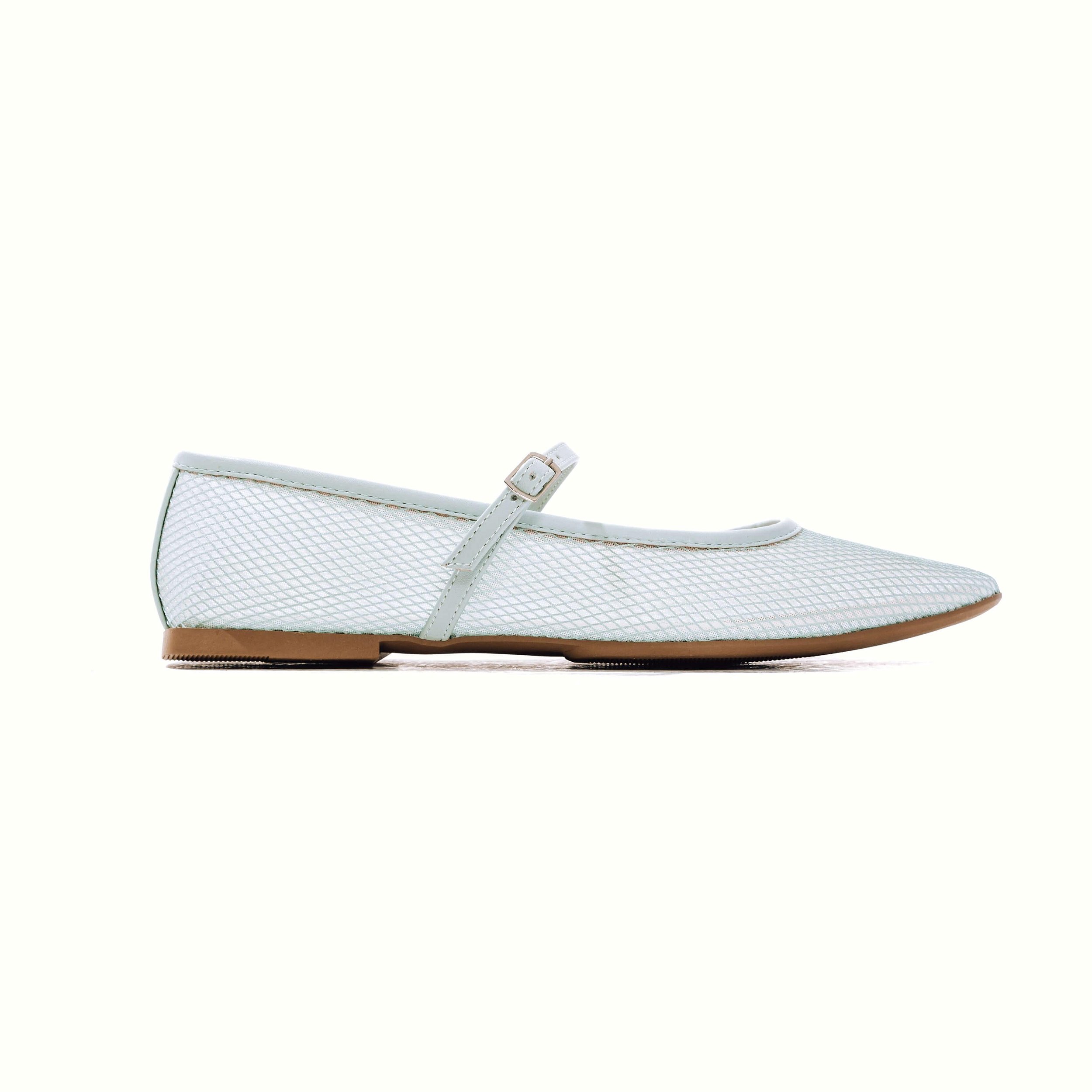 RITA - SAPATILHA FEMININA BICO QUADRADO FIVELA TELA FECHADA MENTA