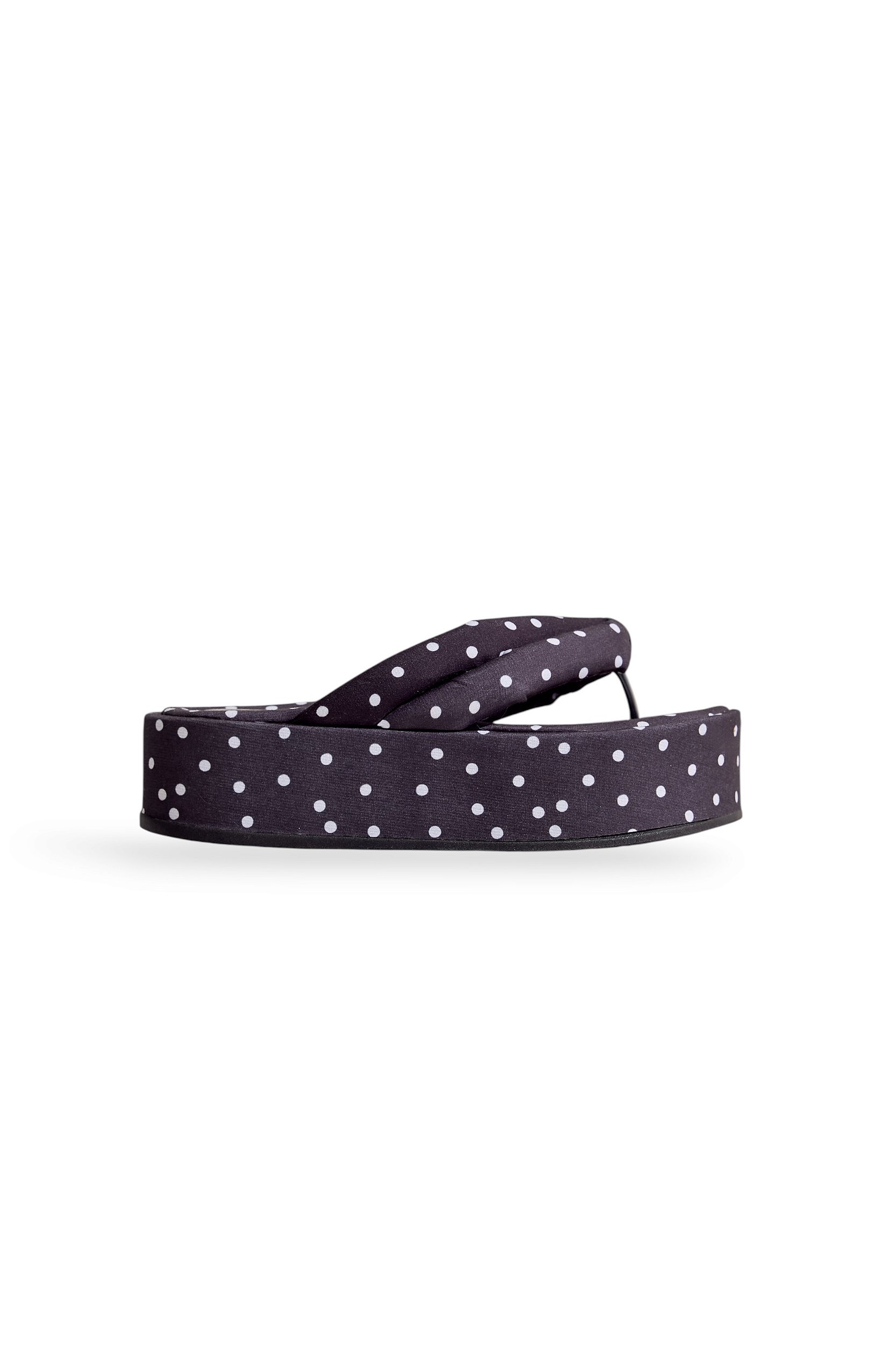 | Detalhes | Tiras puffer acolchoadas em formato flip flop, com bolinhas (Poá) |